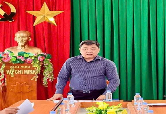 Đồng chí Trần Thế Vinh - Bí thư Đảng ủy, Chủ tịch HĐND xã phát biểu tại hội nghị